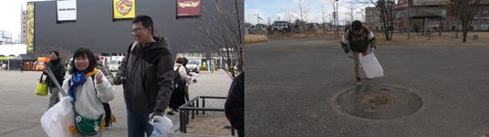 ゲーム感覚でごみを拾い集めて、スタジアム周辺をきれいにしよう!