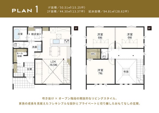 ■間取プラン高い断熱性能を確保しながら、吹き抜けやオープン階段など意匠性の高いプランを用意しています。