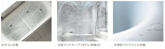 ■ユニットバス(一部抜粋)ボタンひとつで、床や浴槽を自動洗浄。きれい除菌水により黒カビやピンク汚れを抑制。面倒なお風呂掃除がラクになり、キレイが長続きします。