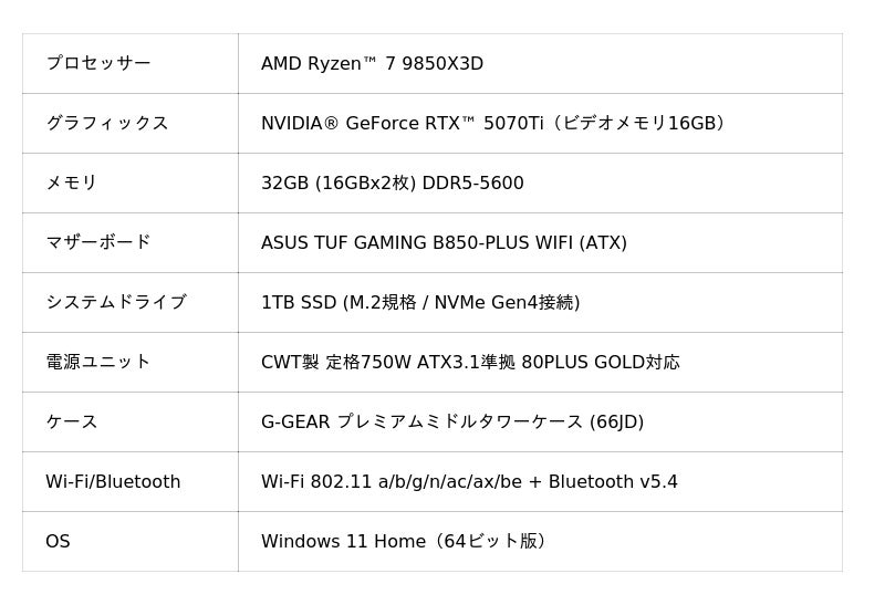 【TSUKUMO】G-GEAR、AMD Ryzen 7 9850X3D プロセッサ搭載モデルにグラフィックスカード選択可能なゲーミングPCの新モデルを発売