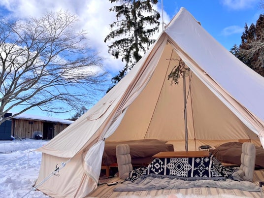 あたたかなテントの中でこたつで過ごせる"こたキャン宿泊プラン"や、木のぬくもりを感じる"ログキャビン(ベッド付き)プラン"で、雪景色に包まれた冬の高原ステイを、より気軽にお楽しみいただけます。