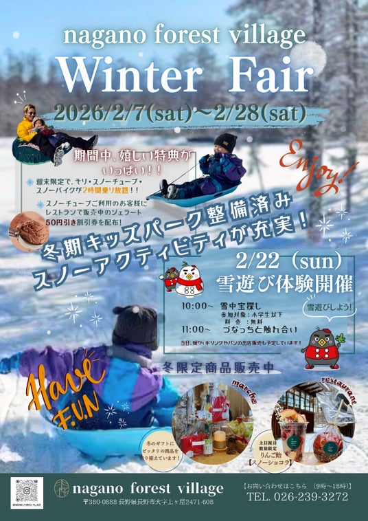 nagano forest village (所在地:長野県長野市、運営:eternal story株式会社 代表取締役:村上 達哉)は、「nagano forest village Winter Fair」を2026年2月7日(土)から2月28日(土)まで期間限定で開催いたします。