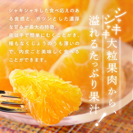 栽培が難しく、生産者が限られる希少品種。濃厚な甘さとプチプチシャキッと食感が人気、薄皮・種なしで手でむける"ご褒美柑橘"
