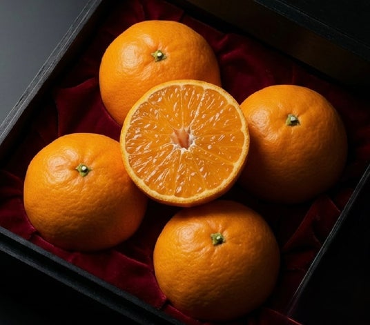 味わいの特長は、濃厚で力強い甘みと、ひと口目から伝わるプチプチでシャキッとした食感(粒立ちの良さ)。酸味が少ないため甘さが際立ち、デザート感覚で楽しめます。さらに、薄い皮で手でむける/種なし/内皮ごと食べられるなど、食べやすさにも優れています。見た目は"つぶれたように平たい"独特のフォルムで、箱を開けた瞬間に話題になるプレミアム柑橘です。