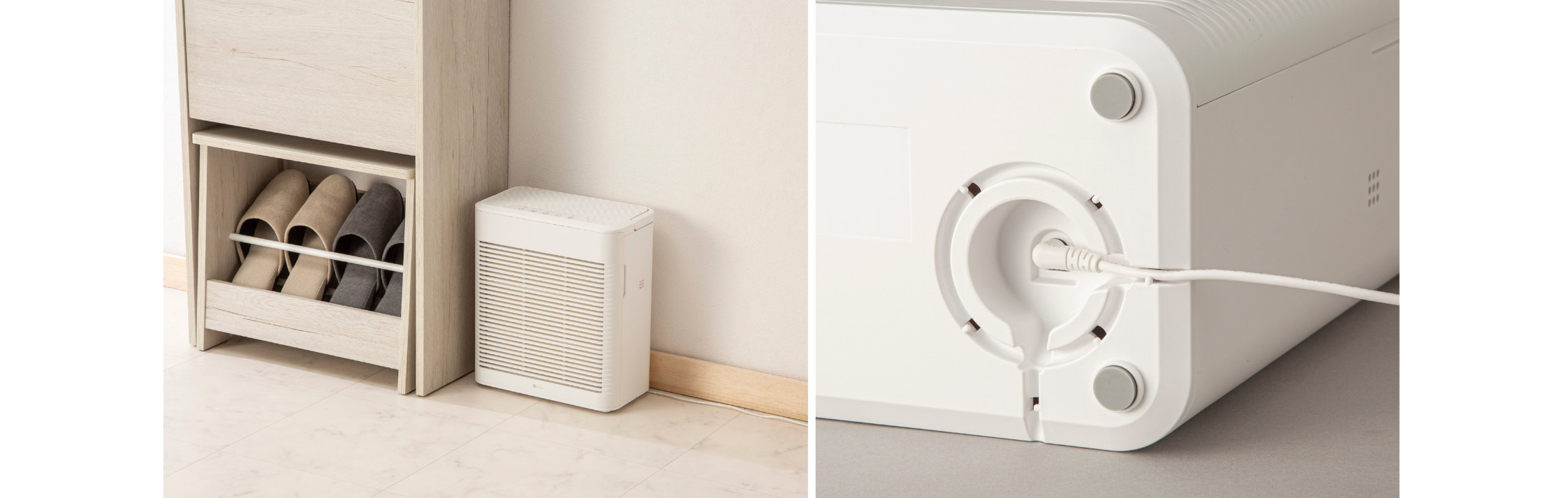 運転音をおさえるおやすみモードに加え、2・4・8時間の切タイマーを搭載。玄関や寝室など、さまざまな場所で使いやすい機能を備えています。日々の使い勝手にもこだわりました。