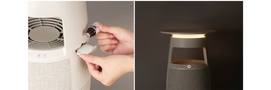アロマオイルが使用可能(※5)なのでお好きな香りをお楽しみ頂けます。さらに、風量を抑えて運転する「おやすみモード」を搭載。切タイマー(4・8・12時間)や、ナイトライト代わりにもなる明暗2パターンのLEDライト付きでリラックスタイムにもおすすめです。