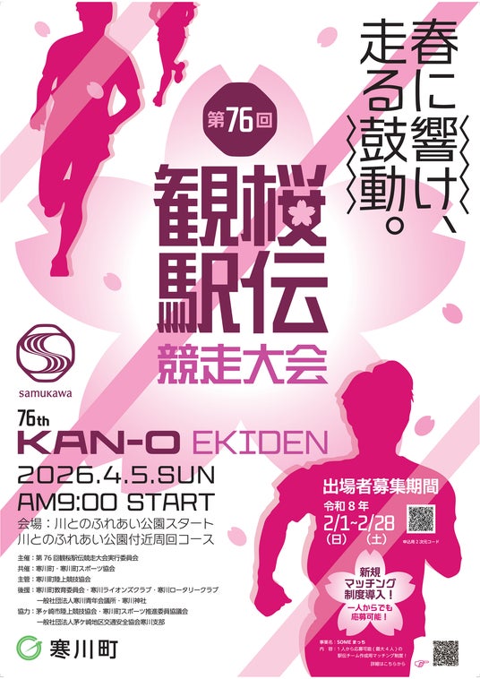 春に響け、走る鼓動。 第76回観桜駅伝競走大会開催及び参加者募集!新たな試み『SOMEまっち』で、より多様な仲間と共に参加の機会を広げます。