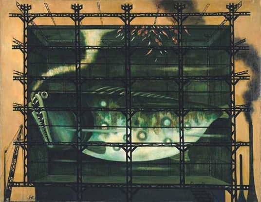 第1章 不安な都市戦争の記憶が生々しい1950 年代、日本は朝鮮戦争を背景に経済復興を遂げ、高度成長期へと突入していきます。かつての焼け野原に建ち並ぶビルや工事現場を見ながら、敗戦による社会の激変を経験した当時の若い作家たちは何を思ったでしょうか。デモクラ-ト美術家協会やルポルタージュ絵画運動など、戦後の美術運動に関わった作家たちの50 年代の作品の中から、都市や人々を描いた作品を紹介します。