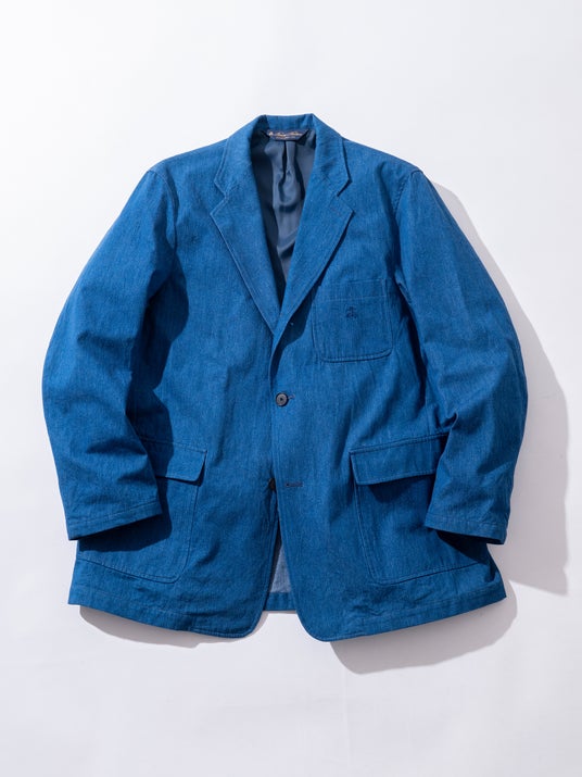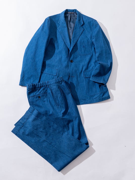 2023年9月に始動した本別注企画は、これまでの各コレクションにおいても大きな反響を呼んできました。「タイムレスに着用できる上質なデイリーウェア」を軸に、が培ってきたクラシックなテーラーリングと、のモノづくりへの探究を反映したジャケットとスラックスを展開します。クラシックなテーラーリングを基調に、日本の確かな縫製技術で構築したデニム素材のセットアップです。