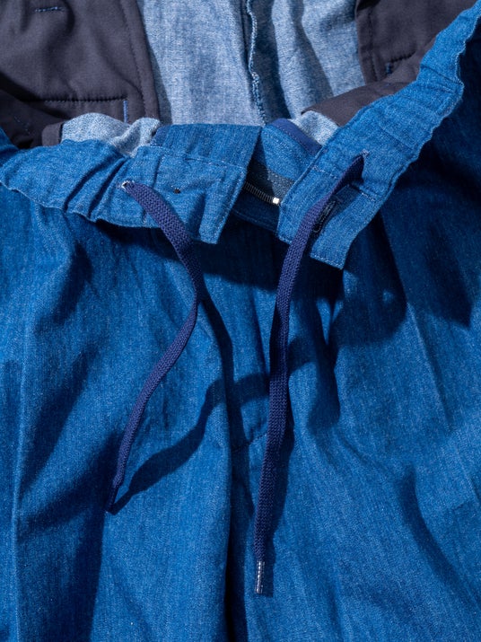 ウエストにドローコードを配することで、リラックスした穿き心地を実現しました。セットアップとしての統一感を保ちながら、過度に構えすぎないバランスに仕上げています。