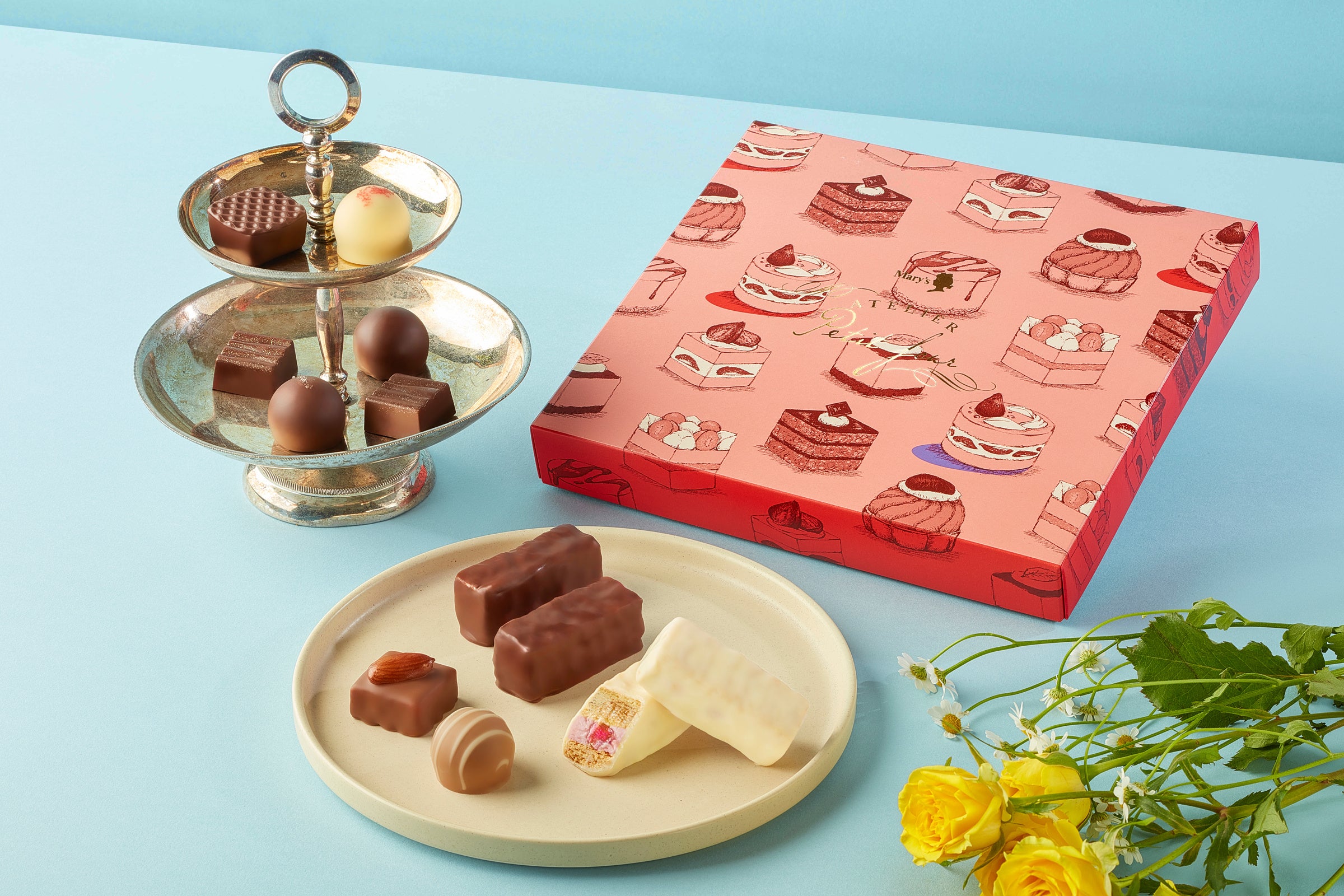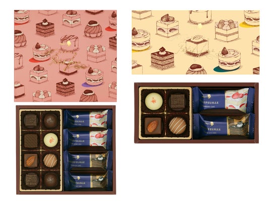 食感が楽しい素材をクリームに合わせたリッチミルフィーユと、ケーキをイメージしたチョコレートの詰め合わせです。