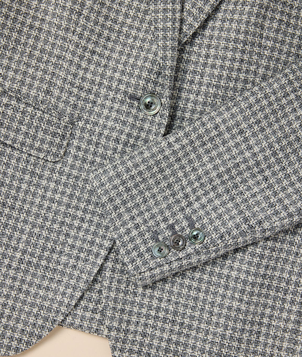 ウール・シルク・リネンのサマージャケット素材。立体感のある織組織が、軽やかでしなやかな印象を演出します。上品な光沢とドライタッチの風合いを併せ持つ素材です。