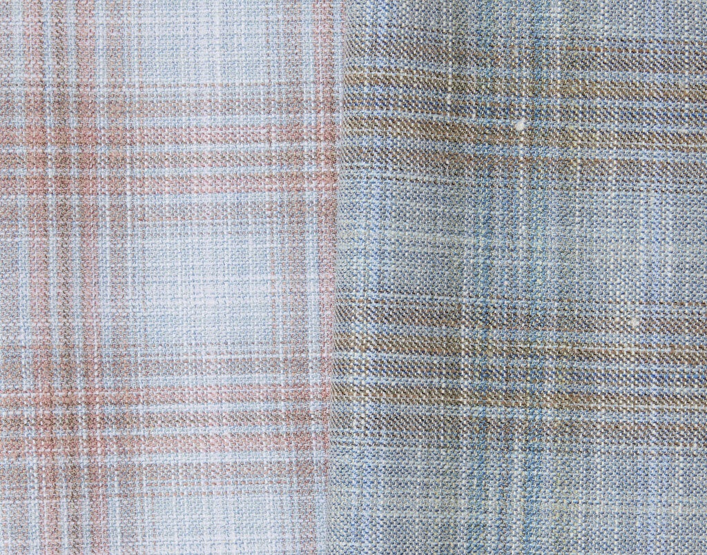 太番手の21マイクロンウール糸を使用した「ラスティック・トロピカル」素材。強度が高くシワになりにくいドライなタッチと、カントリー調の表情が特徴です。春夏から秋口まで活躍し、幅広いシーンで活躍する素材です。