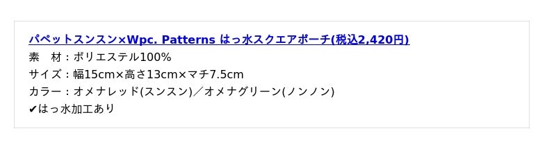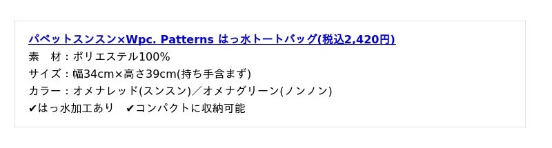 株式会社ワールドパーティー(本社:大阪市住吉区、代表取締役社長:冨田智夫)が展開する傘ブランド「Wpc.(ダブリュピーシー)」とライフスタイルブランド「Wpc. Patterns(ダブリュピーシーパターンズ)」は、SNSを中心に大人気のキャラクター『パペットスンスン』と"食べ物"をモチーフにした傘やトートバッグなどのコラボレーションアイテム全8種を、2026年2月9日(月)よりWpc.公式オンラインショップ、Wpc.直営店舗他、全国の取扱店舗にて販売開始いたします。