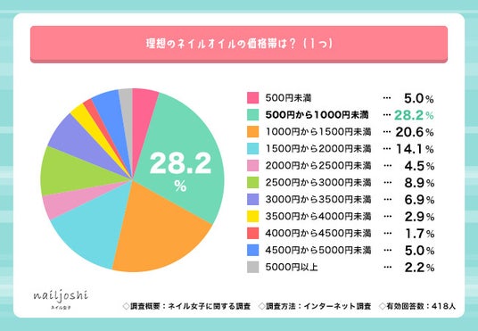 ・理想のネイルオイル価格帯、最多は『500円~1000円未満』(28.2%)