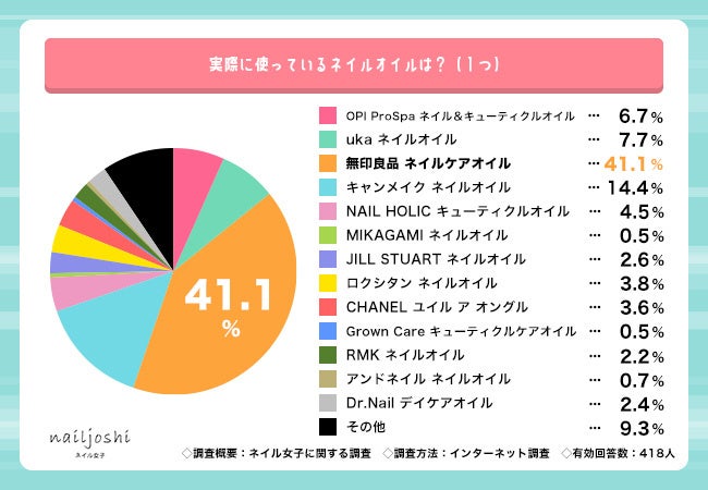 ・実際に使用しているネイルオイル、『無印良品 ネイルケアオイル』が圧倒的1位(41.1%)