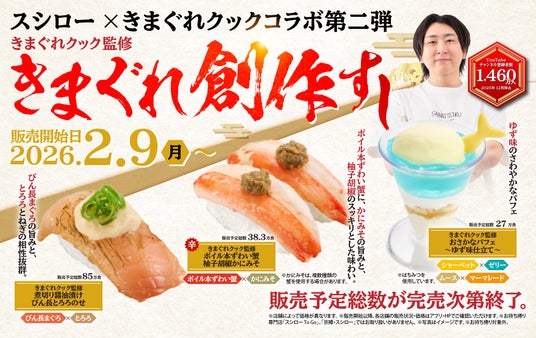 YouTuberをはじめとするクリエイターマネジメント事業を展開する株式会社Carry On(本社:東京都渋谷区、代表取締役:高田樹)は、所属クリエイターである「きまぐれクック」監修の商品を株式会社あきんどスシロー(本社:大阪府吹田市、代表取締役社長:新居耕平)が展開している回転すし「スシロー」にて第二弾の商品を2026年2月9日(月)から販売開始いたします。
