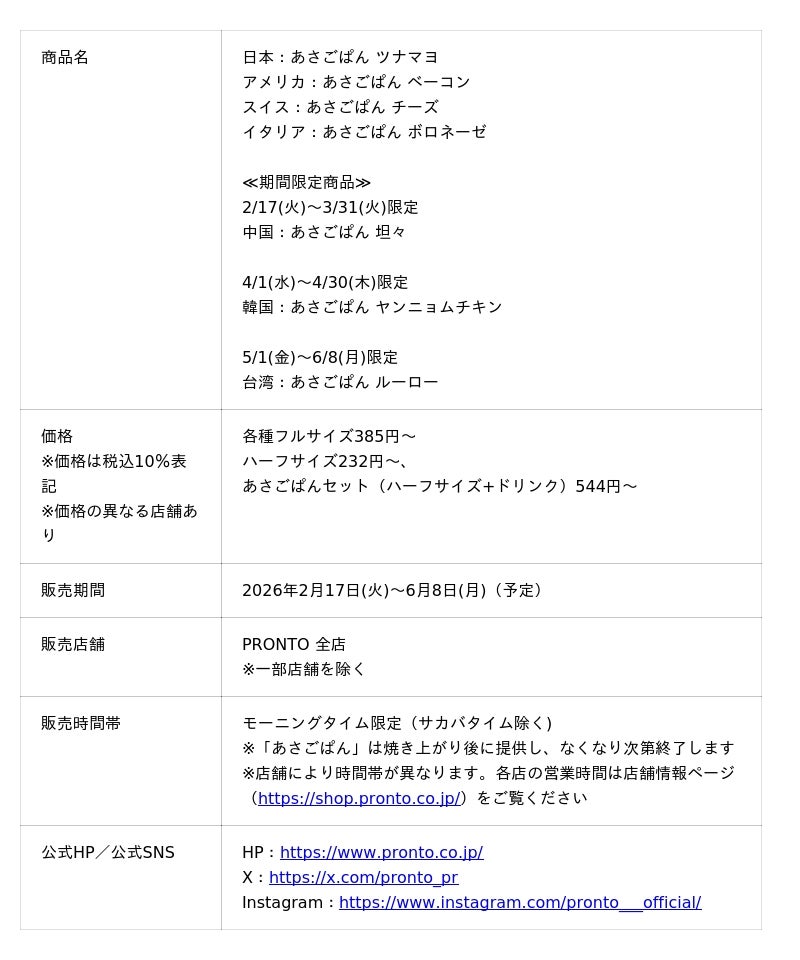 全国の『PRONTO(プロント)』で発売「あさごぱん」