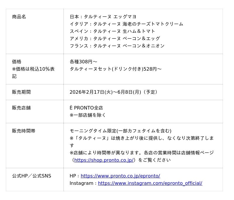 株式会社プロントコーポレーション(本社:東京都港区、代表取締役社長:杉山和弘)は、株式会社地球の歩き方(本社:東京都品川区、代表取締役社長:新井邦弘)とコラボしたメニュー「あさごぱん」を、全国の『PRONTO(プロント)』にて、2026年2月17日(火)より販売開始いたします。同時に、『È PRONTO(エ プロント)』では「地球の歩き方」の世界観を取り入れた「タルティーヌ」を展開いたします。