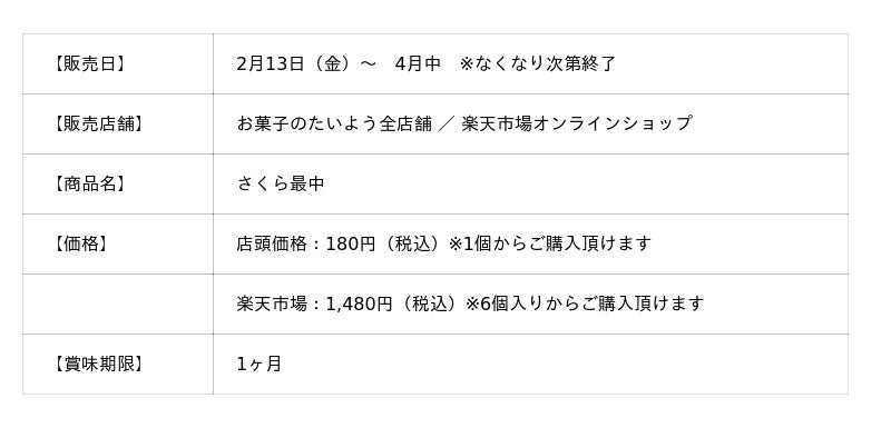 株式会社太陽社(所在地:千葉県匝瑳市飯倉293、代表取締役:片岡正裕)が展開する、千葉県で長年愛され続ける菓子店「お菓子のたいよう」は、桜スイーツ第2弾となる春限定商品「さくら最中」を、2月13日(金)に発売いたします。「一輪の桜を和菓子に。」というコンセプトのもと、味も、香りも、かたちも--すべてを淡桜色の"桜"で仕立てた最中。封を開けた瞬間から春を感じる、まさに"食べる桜"と呼ぶにふさわしい一品です。