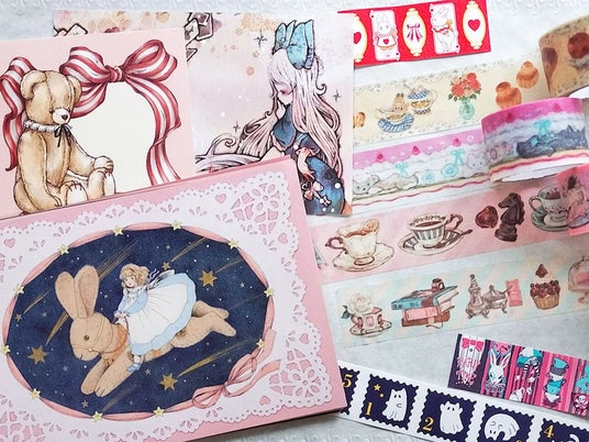 「英国とアリス」マスキングテープ各880円、ロールシール1,100円~、メモ帳550円~ ◎9階 催場