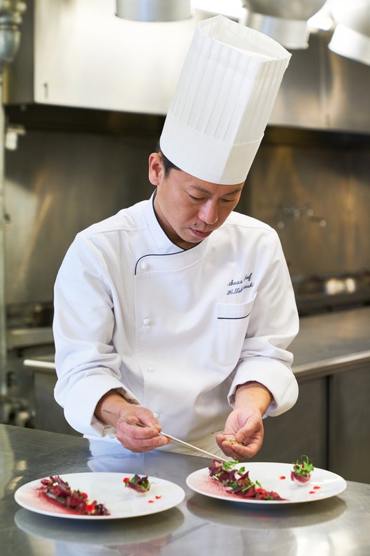 帰国後、2軒のレストランでシェフを務め、2013年に東京ドームホテルに入社。2018年、ダイニング「ドゥ ミル」シェフに就任。