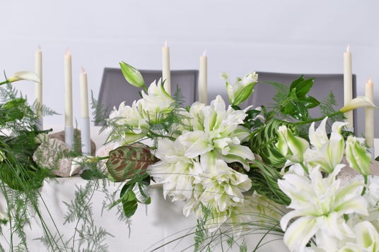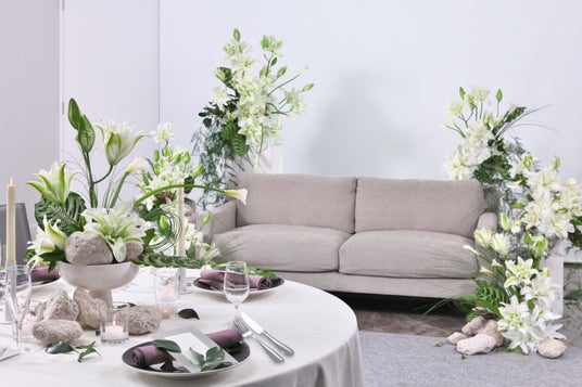 「ナチュラルノーブル」のテイストを採用。 バラに代わる新しい選択肢として、洗練されたスタイルを好むお客様へ、シンプルながらも存在感のある空間を提案します。