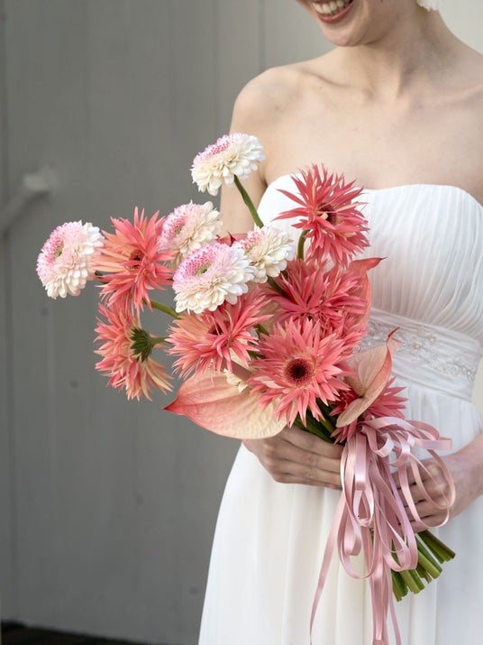 一輪でも存在感があり、茎の流れで動きが出せるため、華やかさと抜け感を同時に演出できるのが魅力です。ガーベラの花言葉は「希望」「前進」と前向きで、最近は花弁が細いスパイダー咲きなどの変わり咲きも人気です。