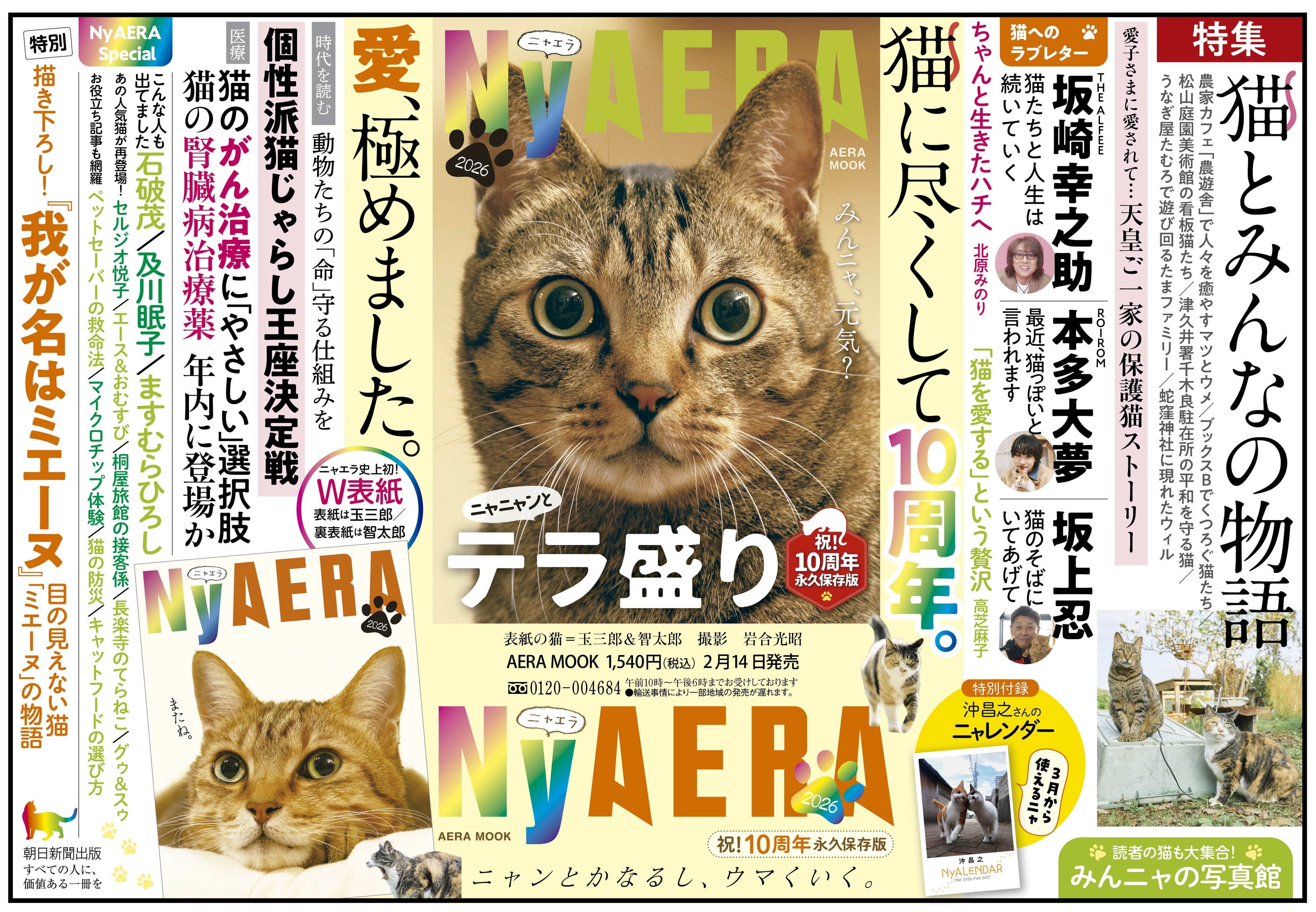 猫を愛するみニャさま、2026年も丸ごとぎっしり猫だらけの「NyAERA」の季節がやってきました。今年は創刊10周年を記念して、新規取材記事に加えて過去の人気記事もドーンと収載。増ページの猫愛MAXでお届けします!