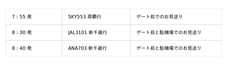 (1)航空会社と連携した出発便のお見送りセントレアから出発されるお客様へ、「徳川家康と服部半蔵忍者隊」「忍者フー」、そして忍者に変身した航空会社スタッフが、ゲートでのお見送り、ノベルティの配布、写真撮影を実施します。