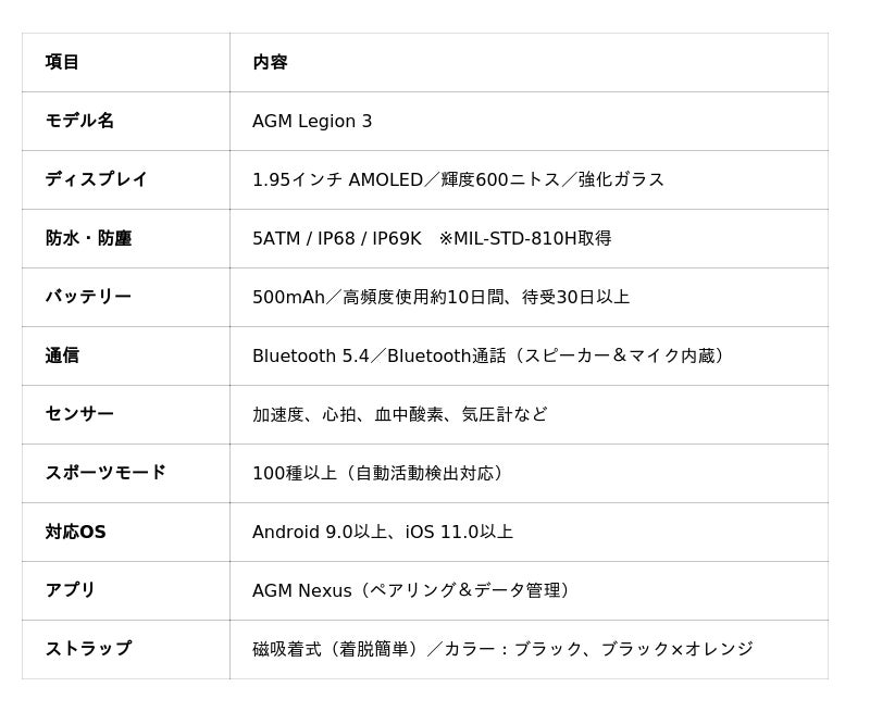 AGMは、耐環境性能とスタイリッシュなデザインを両立したスマートウォッチ「AGM Legion 3」の日本市場向け先行販売を、本日2026年2月14日より開始しました。