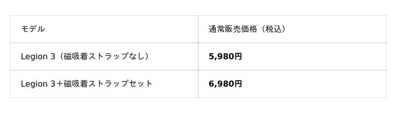 日本国内では全サイト合計1000台のみの数量限定で、すべてのユニットに磁吸着ストラップをセット。この機会にぜひ、Legion 3の圧倒的なコストパフォーマンスをご体感ください。