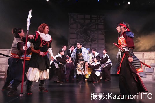 物語へ観客を誘うのは、語り部役の枝尚人。芝居、ダンス、殺陣、歌を織り込んだエンターテインメントの入り口に立ち、作品の解像度を引き上げていく。