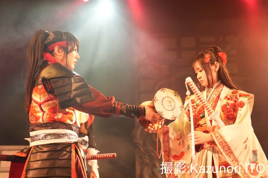 そんな義経を愛するのは佐月愛果が演じる静御前だ。佐月は目に力をたぎらせ、義経をまっすぐに見つめる。その純粋な強さは、観る者にも安心感を与えていた。静と共に吉野まで義経を追いかける佐藤忠信を演じるのは亀田結心。名古屋公演からの続投で、2度目となる今回も、殺陣にダンスにと大活躍。村瀬やIMO*Tに勝るとも劣らぬ華をまとい、堂々たる姿を見せた。