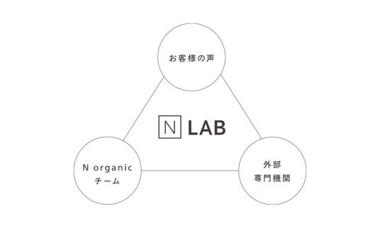 「N organic」が350万人以上*¹という膨大なお客様データの分析や、お客様の声に基づいてリアルな肌悩みを特定し、外部の専門機関と一緒に研究を行う「Nラボ」。必要に応じてさまざまな外部機関と連携しながら、サイエンスに基づくもの作りを行っています。