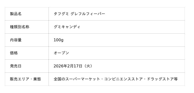 『タフグミ グレフルフィーバー』を2月17日(火)より期間限定発売しますので、お知らせします。
