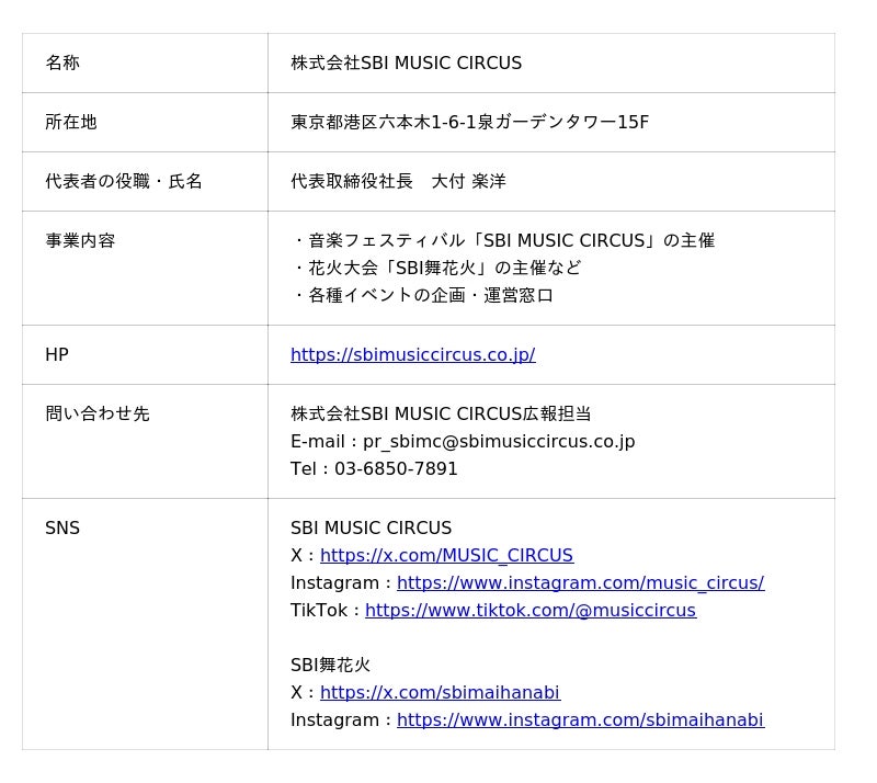 株式会社SBI MUSIC CIRCUS pr_sbimc@sbimusiccircus.co.jp 03-6850-7891