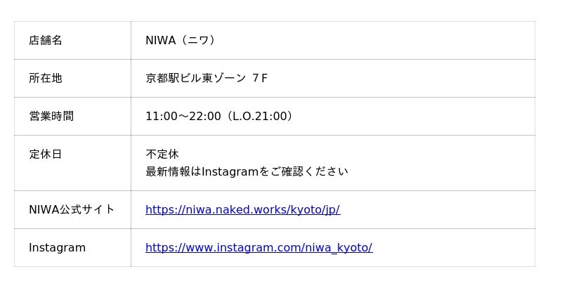 ネイキッドは、京都の魅力を"点"ではなく"面"として捉え、文化・芸術・自然・街の営みをつなぐ体験設計を行うプロジェクト「NAKED GARDEN ONE KYOTO」を推進しています。その取り組みの一環として、京都の玄関口である京都駅から文化体験を立ち上げ、国内外の来訪者が"旅の入口"で京都の価値に触れられる拠点として誕生したのが「NIWA」です。NIWAは、単なる立ち寄りスポットに留まらず、伝統文化を現代の感性で体験できる場として、文化体験プログラムの実施、アート演出を通じた文化の再編集、地域の魅力を発信する接点づくりなど、京都の文化発信拠点としての機能を担っていきます。