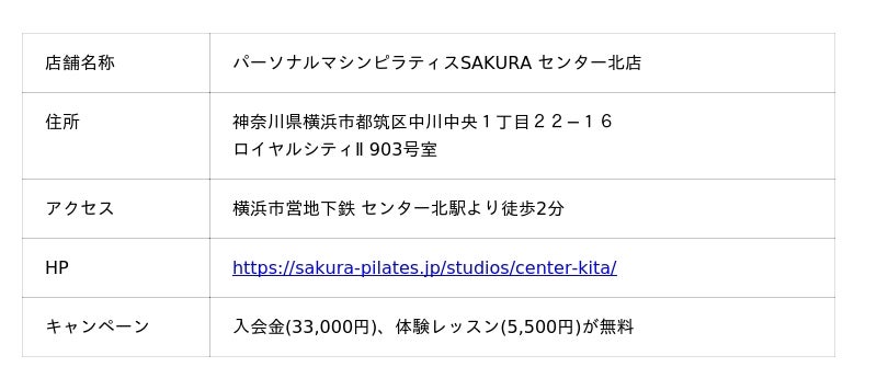 - パーソナルマシンピラティスSAKURA センター北店の基本情報