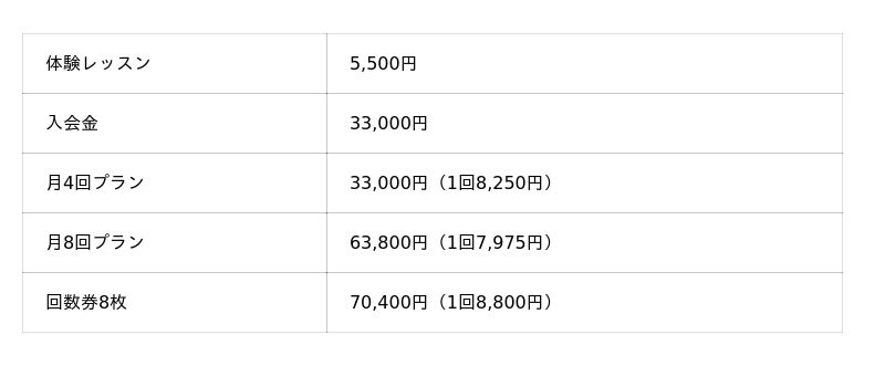 - パーソナルマシンピラティス センター北店の料金表