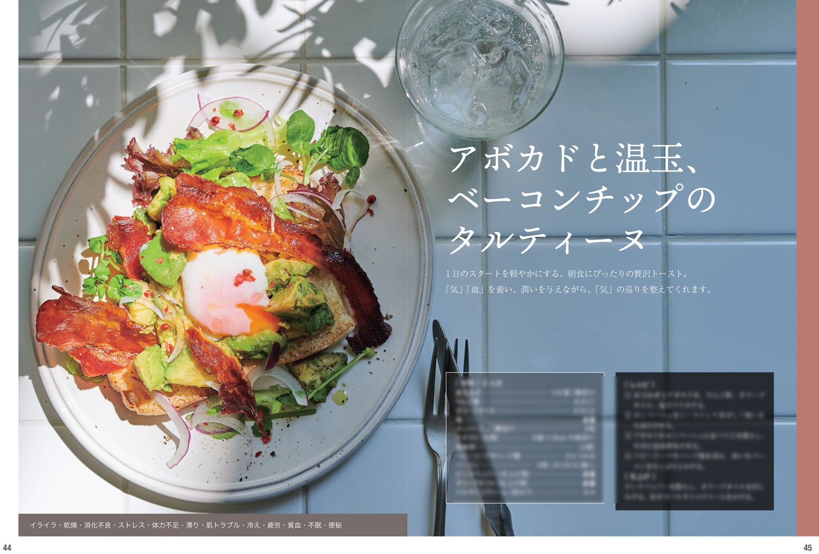 新年度・新生活が始まる春は、期待と同時に疲れやすさや不調を感じやすい季節です。環境の変化によるストレスや生活リズムの乱れから、「なんとなく調子が出ない」と感じる人も少なくありません。薬膳は「難しそう」「特別な食材が必要そう」というイメージを持たれがちですが、本書で紹介するのは、スーパーで手に入る身近な食材だけ。忙しい日々の中でも無理なく続けることができます。自宅でもおしゃれなカフェ気分……なのにしっかり薬膳!