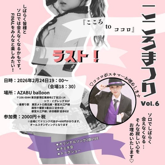 来る2月24日は私「中川心」のソロプロジェクト「こころまつりVol.6」FINALが開催されます!