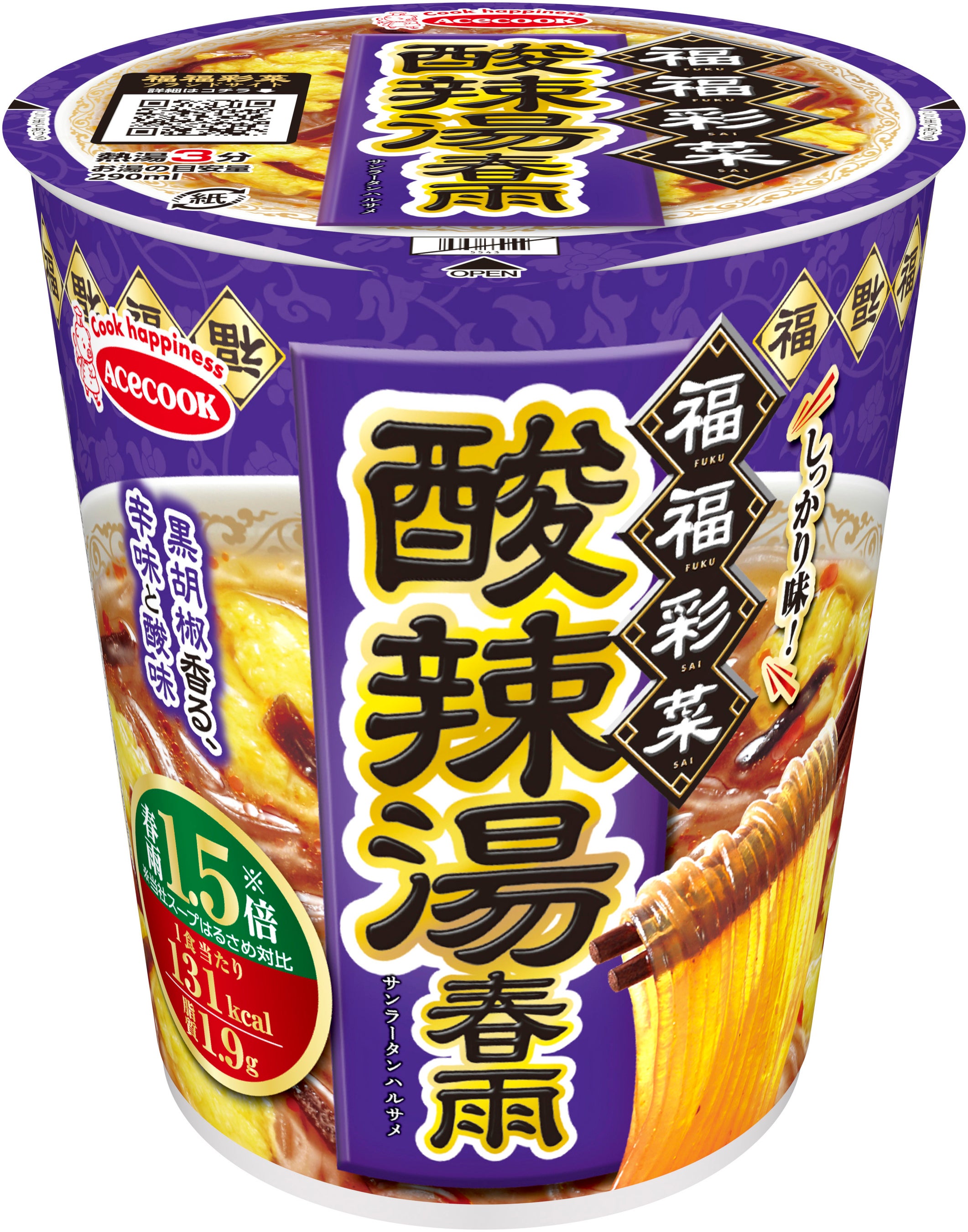 調理感のある本格的な味わいのスープが春雨に絡む「福福彩菜」シリーズに、中華の春雨料理の人気メニュー「酸辣湯」の味わいが新たに仲間入りします。チキンをベースに胡椒を利かせ、お酢の酸味と風味が楽しめる酸辣湯スープに、ラー油の香りと香味野菜のコクを加えることでより一層食欲をそそる、最後まで飽きのこない味わいに仕上げました。