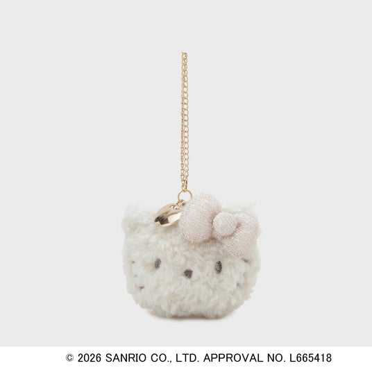 ハローキティの愛らしいお顔をデザインした、キラふわなミラーチャームです。温かみのあるボア素材を使用しており、トレンド感をしっかりと押さえたアイテムです。立体的なリボン部分が、可愛らしさをさらに引き立てています。ギフトにも最適な一品です。