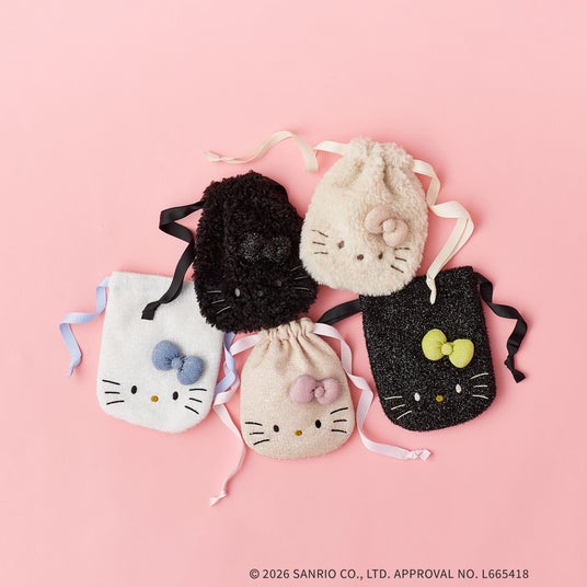 ◆【ハローキティ】キラふわフェイス巾着ポーチ ¥2,989 (税込)