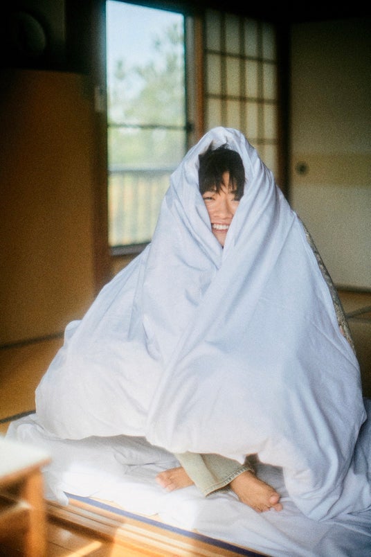 また和と洋の異なる世界観で、古き良き民宿では敷き布団に寝転がる様子や、ぽかぽか温泉に浸かって癒やされるという、まるで修学旅行気分を味わうことに。一転ホテルでは、スタイルの良さが存分に発揮された黒スーツに身を包み、バーでお酒を嗜んだり、"裸ジャケット"を披露するなどセクシーな姿も披露する。