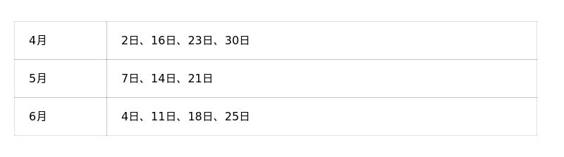 【令和8年4月~6月の開催日】