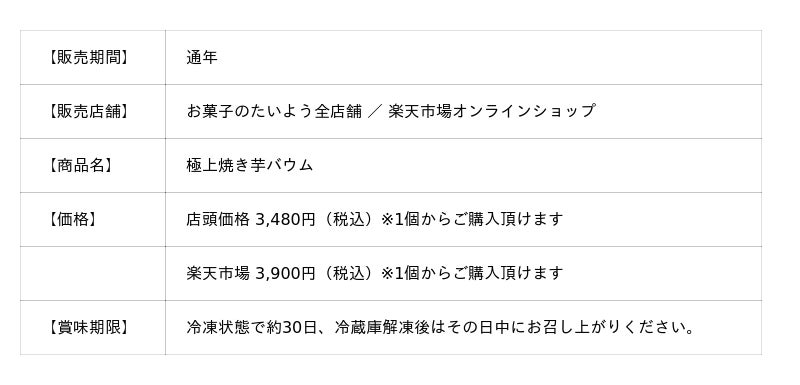オンラインショップ(楽天市場店)https://item.rakuten.co.jp/etaiyou/yakiimo-baum/