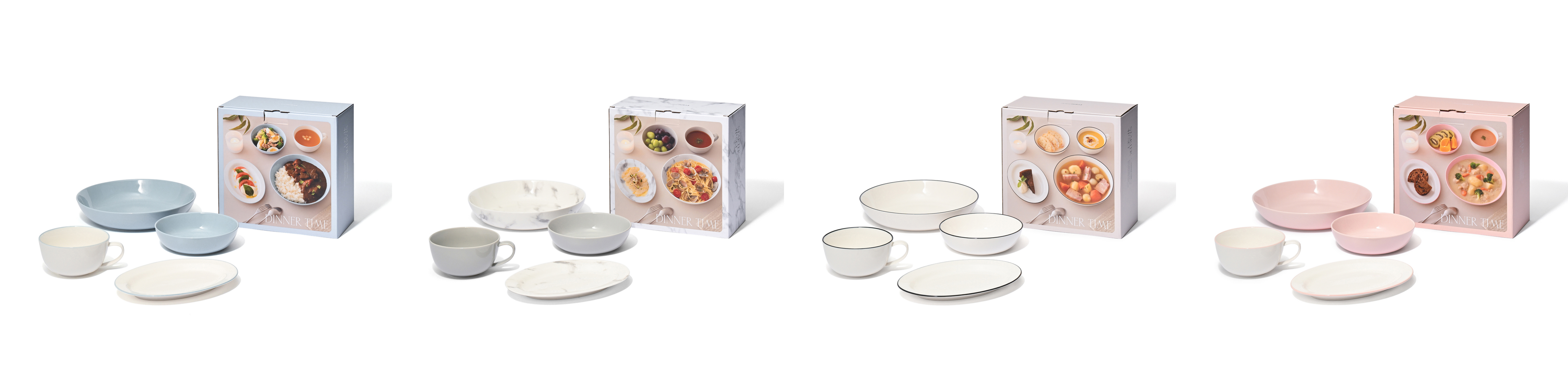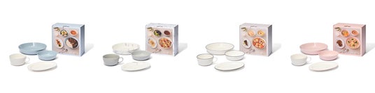 新生活にぴったりな基本の食器セットです。朝食から夕食まで、3食それぞれの食シーンを想定したセット内容で、そのまま使うだけで難しいテクニックなしに、かんたんに素敵な食卓を演出できます。