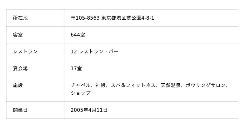 ザ・プリンス パークタワー東京 施設概要